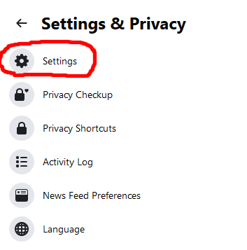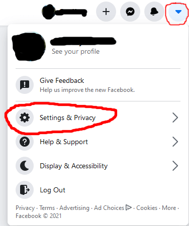 * Login to your Facebook account, click on the top right and then click "Settings & Privacy" (shown in red)