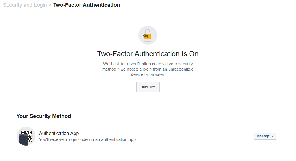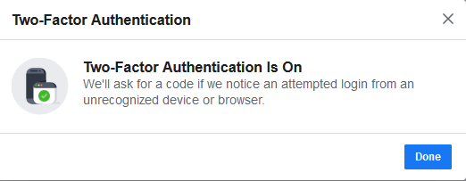* Now you will have 2FA enabled on your Facebook account.
