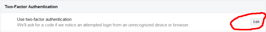 * On the page you will see "Two-Factor Authentication". Click "Edit" on the right hand side.