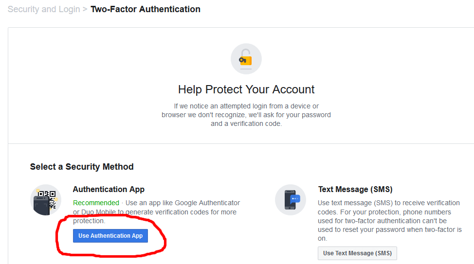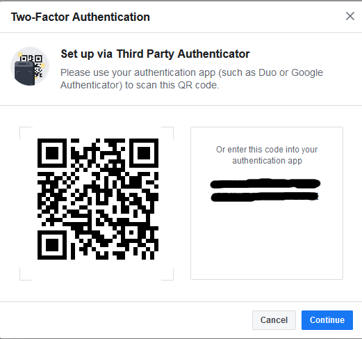 Setting up Facebook for 2FA