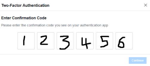 * Back on your Facebook page you can now enter the 6 digits that is in your Authenticator Application.