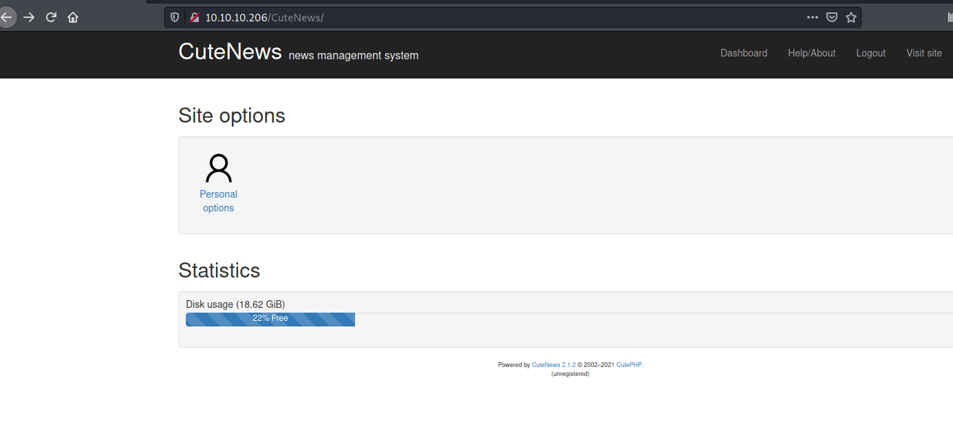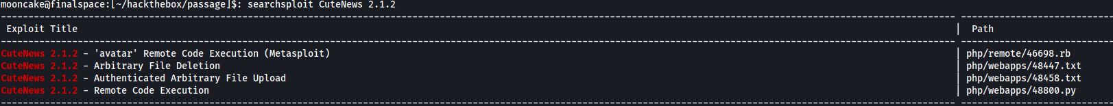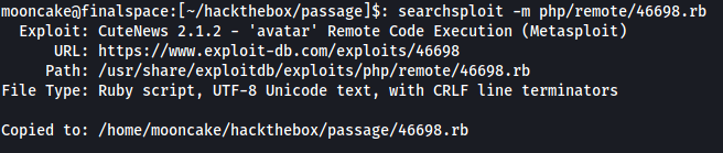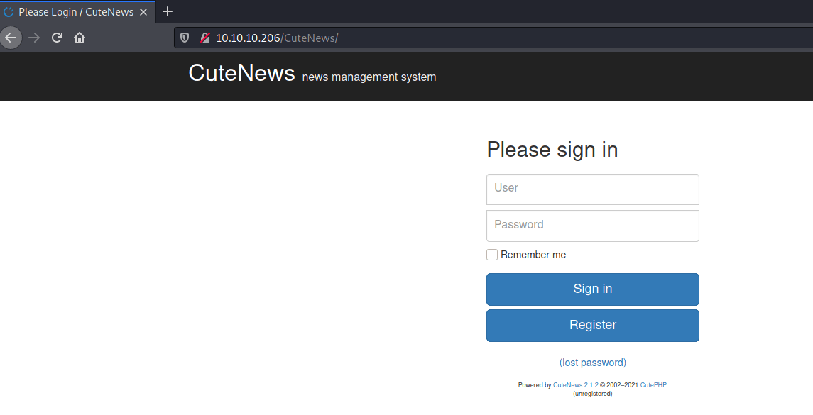 Browsing around didn't give me anything much to play with so then I checked the version of CuteNews and see if there is maybe an exploit in the current software version with searchsploit