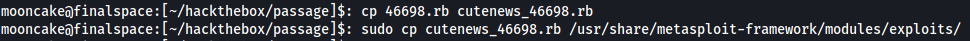 So we are going to download the file via searchsploit, copy it to metasploit to use and then load the module into metasploit.