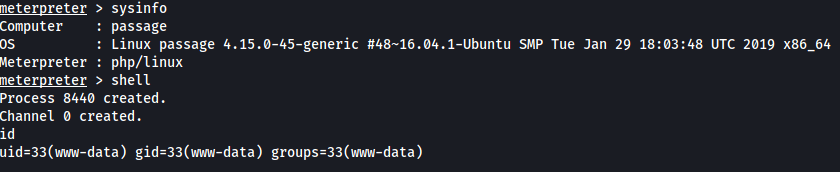 We run sysinfo to make sure we are on the machine and we also check to see what user we are.