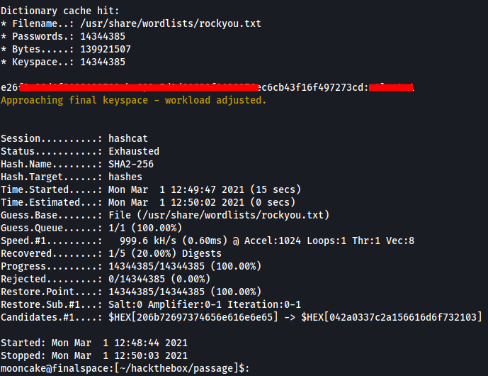 We now have a password for the hash e26f3xxxxxf8108120723ebe690e5d3d61628f4130076ec6cb43f16f497273cd and looking at the file from previously we can see that this hash belongs to [email protected]