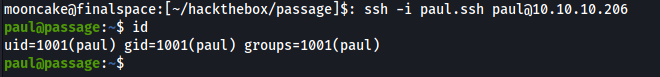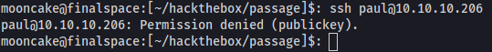We try to ssh with the user paul and the password but we get a login failure probably because we will need a ssh key for the user.