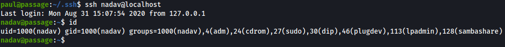 We can just ssh to the nadav user as it seems Paul and Nadav are using the same ssh keys.
