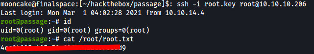 Copy the key and use the key to ssh into the server as root and grab the root flag!
