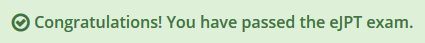 So on 16 Decemeber I purchased the eJPT exam. the courseware (called PTS, penetration testing student) is free through INE with the starter pass and I had a quick run through of it and seems very easy as I have already been dabbling in this sort of stuff for a while. I waited 2 days for any details on the exam but I didn't receive anything. I emailed support who quickly sent through the details for the exam. The exam voucher is valid for 6 months but there was no ways I could wait that long. I decided I was gonna wait 2 weeks before I do it. You have 3 days to complete the exam, answering 20 questions and you have to get 15 answers correct to pass.